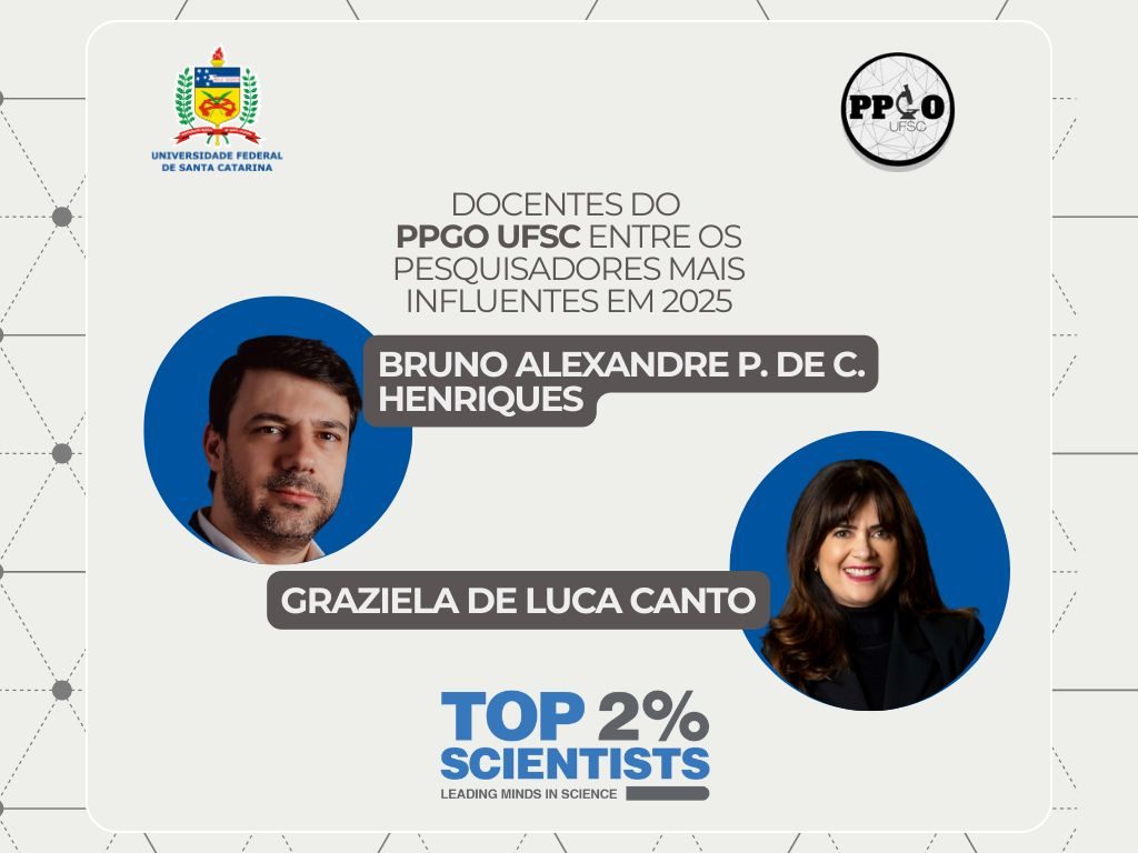 O PPGO/UFSC tem a honra de destacar dois de seus docentes, Graziela Canto e Bruno Henriques, que foram listados entre os 2% de pesquisadores mais influentes do mundo.